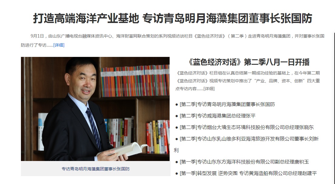 打造高端海洋產業(yè)基地 專訪青島明月海藻集團董事長張國防