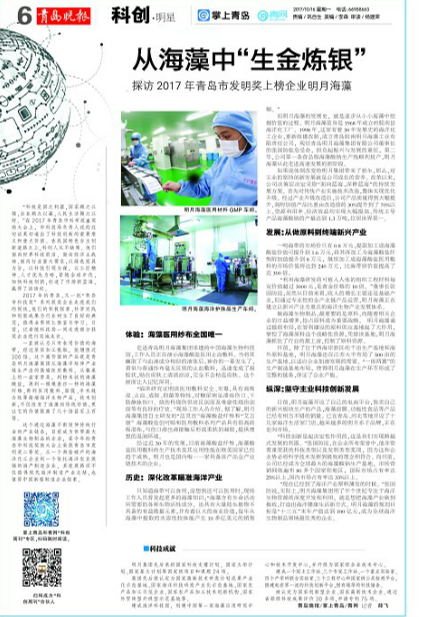 從海藻中“生金煉銀”| 探訪2017年青島市發(fā)明獎上榜企業(yè)明月海藻