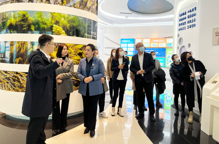 青島金圃廣源科技有限公司領導一行在青島明月海藻生物健康科技集團副總裁孫占一的帶領下參觀明月海藻世界及中國海藻科技館。