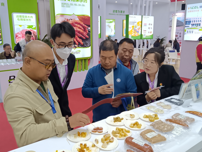 同時,研發與營銷工作人員熱情接待前來品嘗交流的行業客戶,詳細介紹海藻膳纖功能配料其應用原理及賦能肉制品的各種可能。