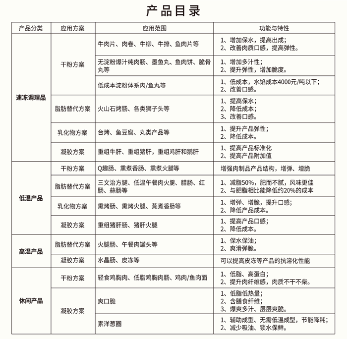現已成功開發出地道腸、低脂雞胸、無質米蛋糕、鮮吐司、減脂麥芬、烏冬面等多類產品應用解決方案。先后與眾多品牌達成深度合作。