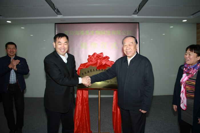2016年3月,中國(guó)工程院院士、青島海洋生物醫(yī)藥研究院院長(zhǎng)管華詩院士為明月海藻集團(tuán)合作項(xiàng)目——青島海萊美生物科技有限公司揭牌。