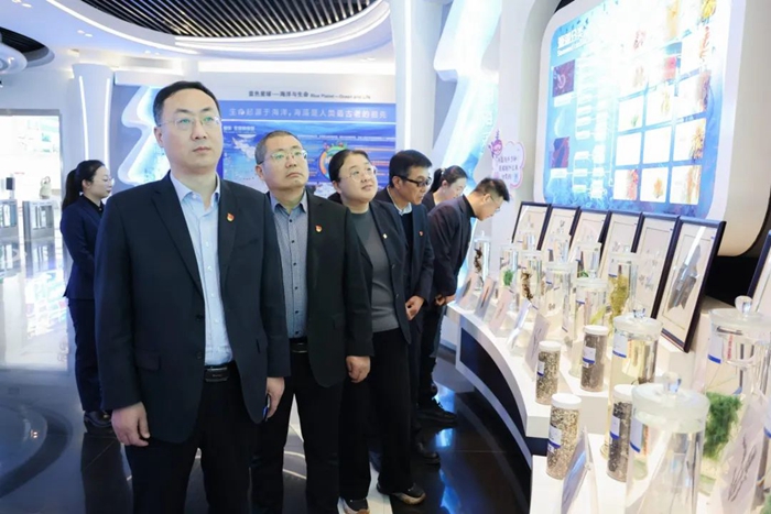 活動伊始,雙方黨員代表一同參觀了中國海藻生物科技館、海藻部落、海藻健康舫,深入了解了明月“一棵海藻發展成一個大健康產業”的發展模式。感受了現代海藻科技的實力與魅力,見證了海洋產業新質生產力對于推動海洋強國建設的重要意義。