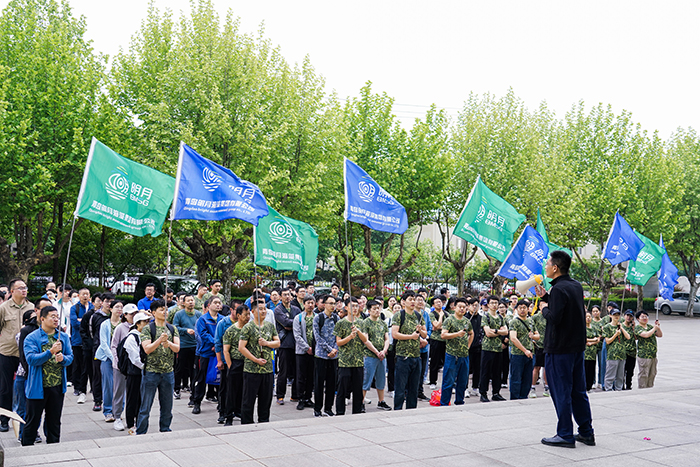臨出發前,大家帶著昂揚的斗志和燦爛的笑容,在明月海藻集團辦公樓整裝待發。