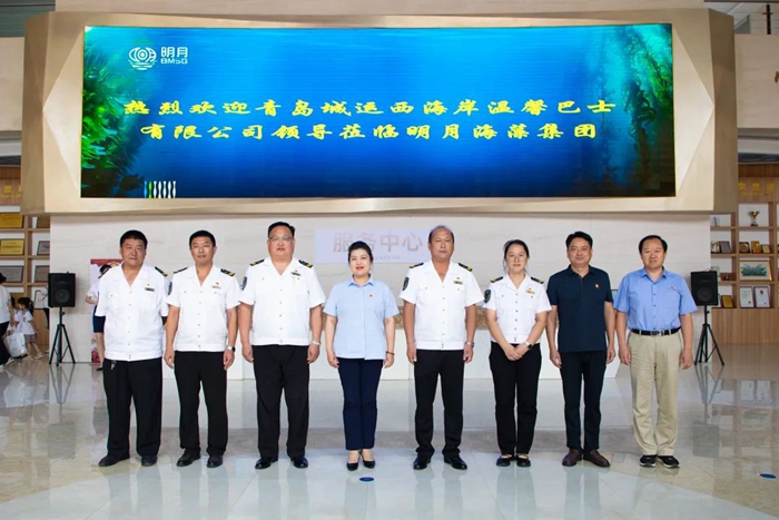 城運(yùn)西海岸交通發(fā)展集團(tuán)有限公司公交運(yùn)營(yíng)事業(yè)部副部長(zhǎng)、西海岸溫馨巴士有限公司黨支部組織委員、工會(huì)主席任顯寶、城運(yùn)西海岸交通發(fā)展集團(tuán)有限公司公交運(yùn)營(yíng)事業(yè)部副部長(zhǎng)、紀(jì)檢委員、安全總監(jiān)李玉俊一行,在明月海藻集團(tuán)黨委副書(shū)記、工會(huì)主席楊曉菁、健康科技黨支部書(shū)記劉振鋒、黨工群團(tuán)中心主任封安波陪同下,參觀了中國(guó)海藻科技館、海藻部落、海藻健康舫,了解了明月海藻集團(tuán)通過(guò)不斷提升海洋新質(zhì)生產(chǎn)力,把一棵小海藻做成一個(gè)大健康產(chǎn)業(yè)的創(chuàng)新發(fā)展之路。