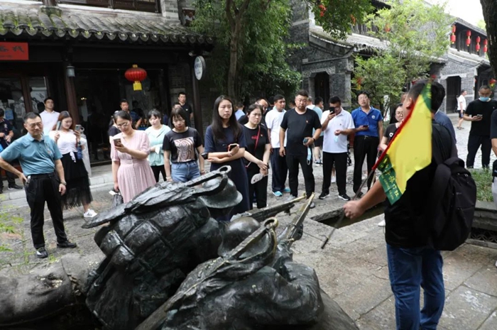 走進(jìn)臺兒莊古城,處處都是古河道、古碼頭,舟楫搖曳,水巷縱橫,當(dāng)?shù)氐拇迕裰_而居,大家立刻被濃厚的運河文化深深吸引,先后參觀了運河奏疏館、運河酒文化展館、運河漕幫鏢局博物館、藥典博物館、藻食記輕食文化館,形象直觀地了解了古運文化的源遠(yuǎn)流長和老臺兒莊的風(fēng)土人情。
