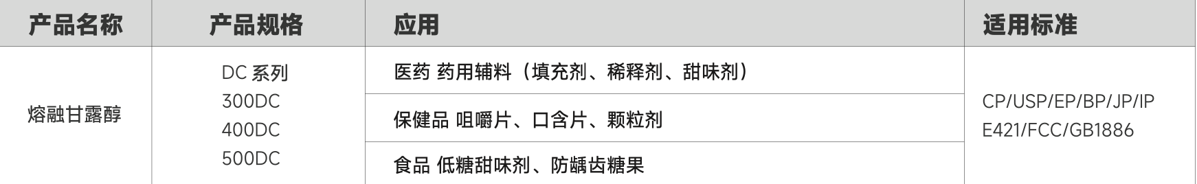 熔融制粒甘露醇是通過熔融制粒工藝制備的甘露醇顆粒,具有良 好的流動(dòng)性、壓縮性和顆粒均勻性,適用于對壓片性能要求較高 的制劑工藝。該系列產(chǎn)品特別適用于口崩片、咀嚼片、速釋片等 固體制劑的制備。
